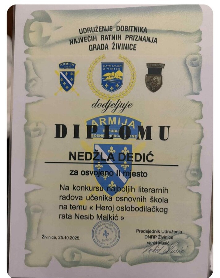 Poveznica na raniju vijest - 2. nagrada na konkursu za literarne radove na temu “Heroj oslobodilačkog rata Nesib Malkić”