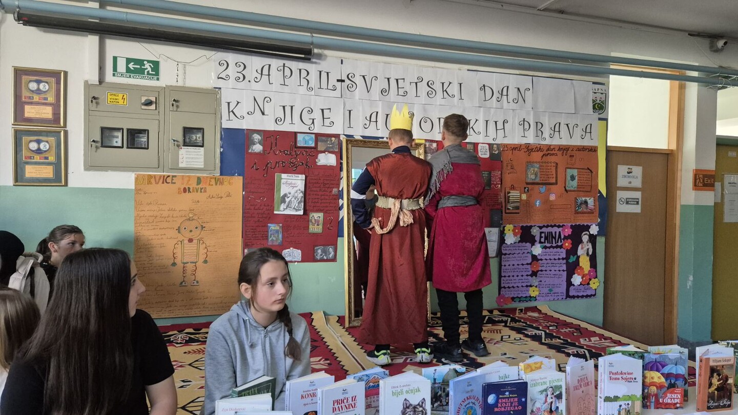 Osim kroz promotivne plakate, učenici naše škole su izveli i jedan dramatizovani odlomak/dio iz romana "Kraljević i prosjak" autora Marka Tvena.