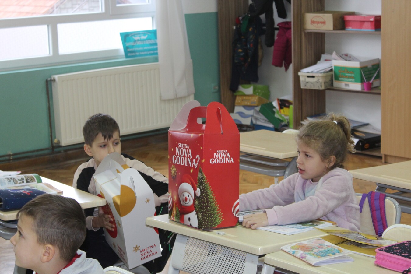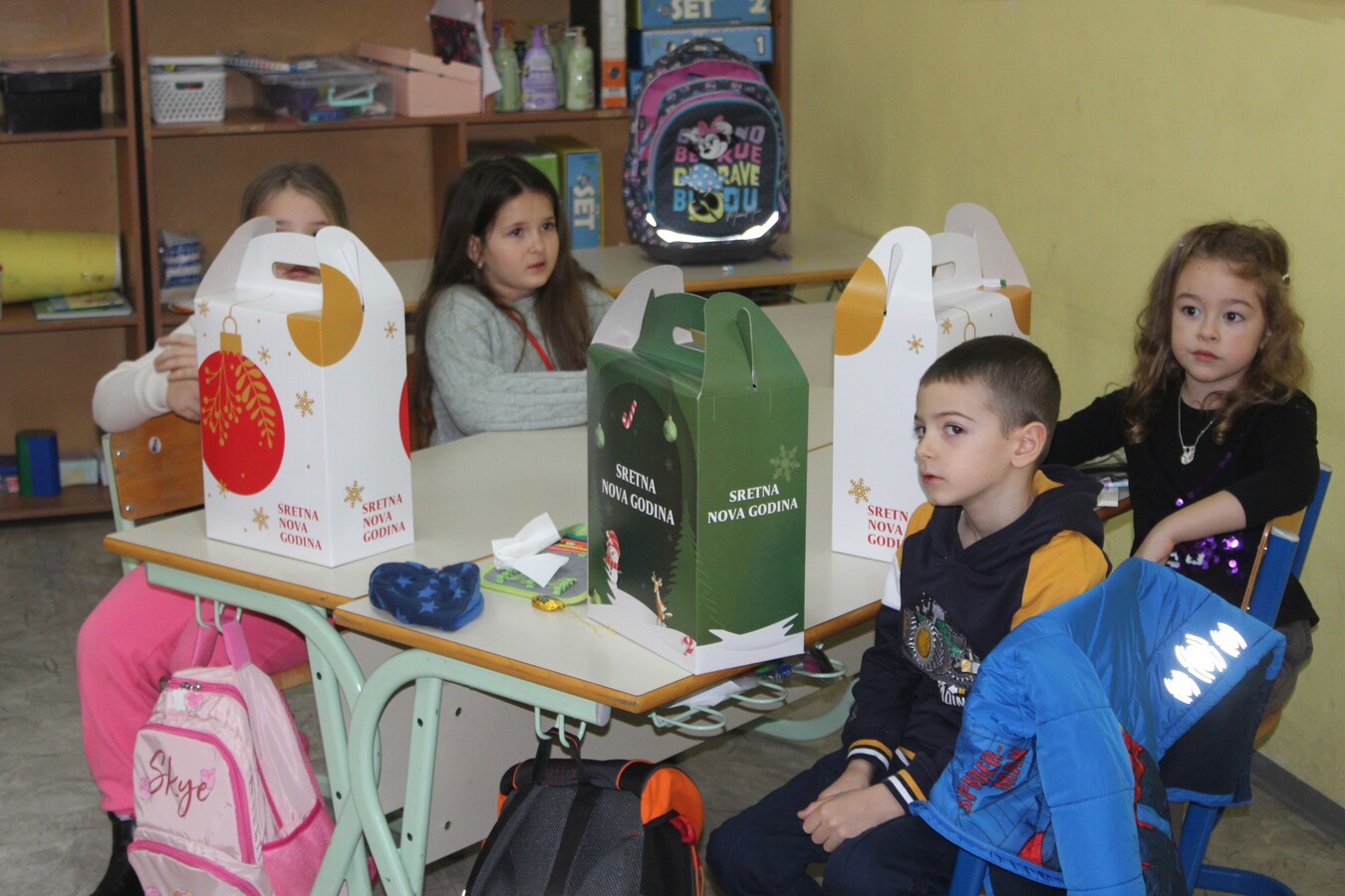 Danas je u našoj školi bila radosna i praznična atmosfera. U povodu novogodišnjeg praznika učenici prvih razreda prvo polugodište završavaju i sa podjelom novogodišnjih paketića.